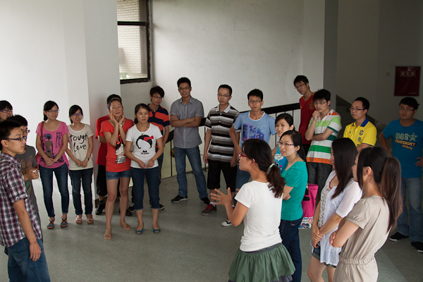 连日来的讲座学习和学术交流让暑期学校的同学收获了很多知识,但是,在高密度高强度的学习任务下,同学们已稍显疲倦。为缓解学习疲劳,舒缓严肃紧张的学术研讨的氛围,也为了进一步促进同学们的相互了解和相互交流,暑期学校为同学们安排了团队训练和素质拓展活动。在这些团队活动中,同学们积极互动、相互交流,在轻松欢快的氛围中消除了隔阂,增进了友谊。
