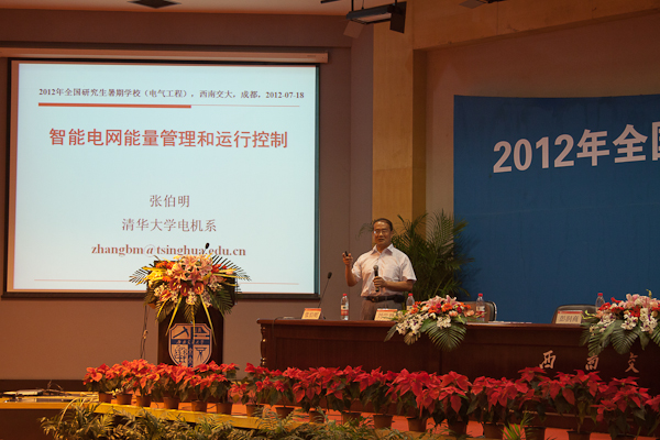 在暑期学校开学典礼结束以后,学员们开始第一天的课程学习。共安排了三场学术讲座:清华大学的张伯明教授主讲《智能电网能量运行和运行控制》专题;重庆大学Fun88乐天堂官网 院长廖瑞金教授主讲《输变电设备物联网关键技术》专题;西南交通大学的马磊教授主讲《电气工程专业研究生培养研讨》专题。
