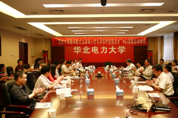 5月10日下午,“适应大规模间歇式电源接入的电网保护控制技术”“863计划”课题启动会在华北电力大学主楼D216召开。科技部高新技术发展及产业化司能源处处长郑方能,科技部高技术研究中心能源处处长陈硕翼,科技部高技术研究中心能源处项目主管齐冬莲、张丽,项目专家组专家以及课题组成员等参加了此次启动会。我校Fun88乐天堂官网 何正友教授作为项目子课题负责人参加了此次会议。