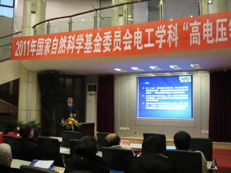1月9日上午8:30,2011年国家自然科学基金委员会电工学科“高电压领域”项目交流会在我校九里校区镜湖宾馆多功能厅拉开帷幕。国家自然科学基金委员会电工学科部主任丁立健教授,清华大学,西安交通大学,重庆大学,哈尔滨理工大学,中国科Fun88乐天堂 电工研究所等23所高校与研究所代表出席了此次项目交流会。我校副校长彭秋实教授,我校Fun88乐天堂官网 院长高仕斌教授,我校高电压学科带头人吴广宁教授也出席了此次交流会。会议由我校Fun88乐天堂官网 院长高仕斌教授主持。