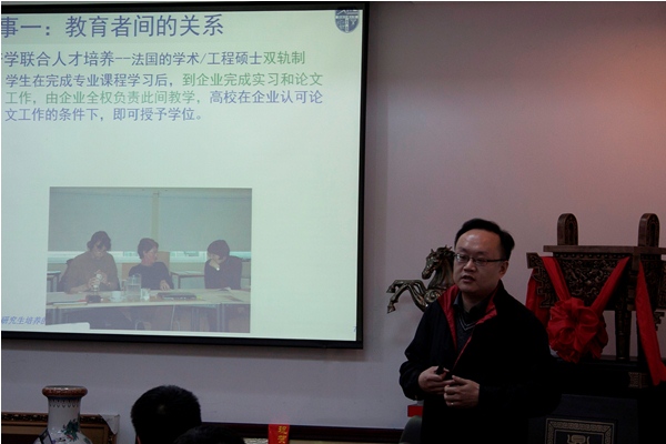 马磊教授结合自身经历和大家分享了对欧洲工程类研究生培养的认识与思考。他通过“一个理念,一组数据,两个故事”阐述了对高等教育理念的理解,也表达出了身为教育者所应有的责任和荣誉感。他认为应该多了解学生,通过沟通去弥补二者之间年龄、文化等差异。