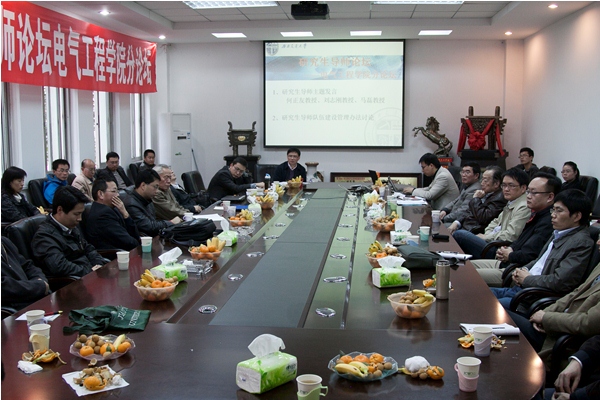 研究生之窗讯(通讯员孙仲民报道王江峰摄影)11月24日下午2点半,西南交通大学2011年研究生导师论坛Fun88乐天堂官网 分论坛在电气馆3211会议室隆重召开。出席本次论坛的有Fun88乐天堂官网 党委王兴龙书记,副院长何正友教授,以及Fun88乐天堂官网 研究生导师代表。此外,研究生院招生办王斌主任,督导组的几位教授和部分学生代表也参加了论坛。全体与会成员就“珍爱·责任·分享”这一主题分别探讨了各自对研究生培养的认识和体会。论坛由何正友副院长主持。