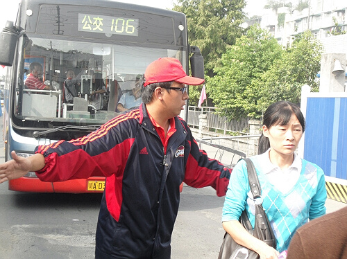 另外,受城市规划建设的影响,公交车经过九里堤公交站出站口时会给行人带来诸多不安全因素。因此,一些志愿者在那里负责提醒过往行人注意安全并协助公交车有序通行。