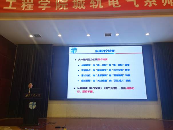 2020年11月2日19时30分,Fun88乐天堂官网 城轨电气系师生见面会在峨眉校区扬华讲堂召开。见面会由Fun88乐天堂 党委副书记张春燕主持,陈维荣院长、罗乾超书记出席见面会,Fun88乐天堂 党委副书记陈勇、团委书记谢力、教师服务中心主任王轶、城轨电气系副主任刘承志,潘育山,黄小红、系办公室主任刘仕兵、学工组辅导员、各班班导师和近三百名同学参加见面会。