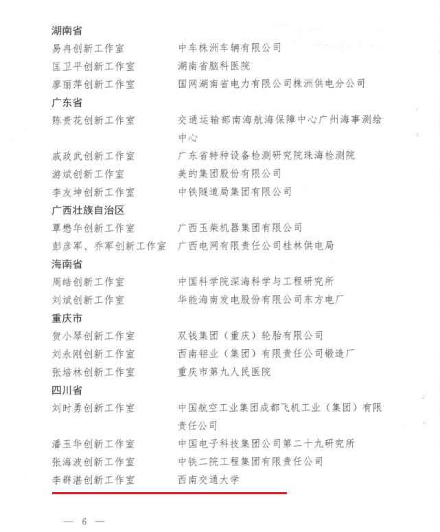 近日,中华全国总工会发文命名第三批全国示范性劳模和工匠人才创新工作室,我院李群湛创新工作室光荣上榜。全国高校中有两所上榜,我校李群湛创新工作室与天津中医药大学张伯礼院士的创新工作室比肩。学校也成为此次活动中唯一上榜的四川省高校。