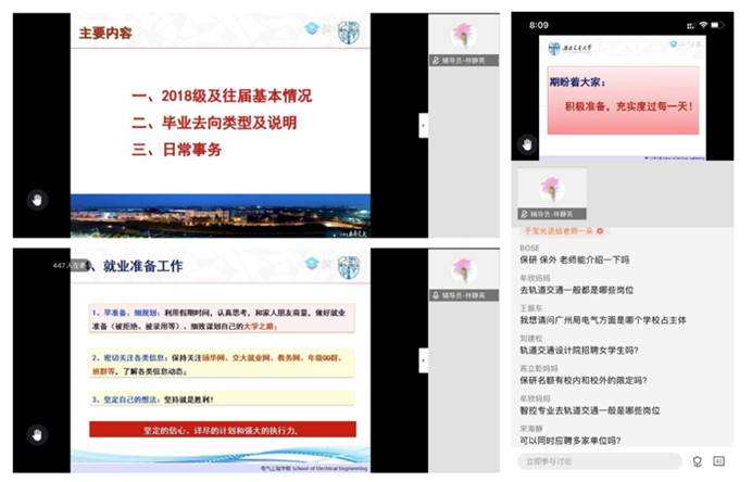 2月8日19时,在本科2017级家校沟通会上,谢力从2017级学生基本情况、就业工作挑战、秋招单位情况、考研形势分析、寒假相关事项五个方面与家长进行交流。谢力在介绍2017级学生的基本情况之后,特别强调2017级学生所面临的就业挑战问题。新形势下,毕业生规模持续增加,就业岗位供给面临挑战;一半以上学生选择考研,目前考研形势严峻。目前部分单位春季招聘已经开始启动,谢力鼓励同学们“抓住时代的机遇,无论何种类型的企业,只要坚持,都可以成就一番事业”、“在工作中摸索、选择、改变自己的发展路径,发展路径之间没有绝对界限”。最后,谢力建议家长们督促学生清查学分、假期有计划有规律开展毕业设计,使大家顺利毕业。