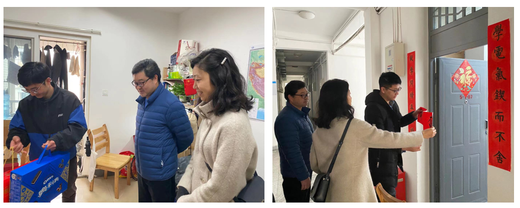 谢力为春节留校学生送上新春祝福,同时也非常关心春节留校学生的日常生活,嘱咐同学们要和家人经常打电话交流,给家人报平安,为家人送去新年问候。谢力与留校学生一起张贴由学工组辅导员一同精心准备的“电气春联”,送上Fun88乐天堂 老师们对春节留校学生的关切祝福,希望同学们在学校度过一个快乐温暖的春节。