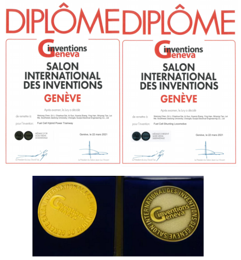 喜讯:在2021年3月第48届日内瓦国际发明展(48th International Exhibition of Inventions of Geneva)上,Fun88乐天堂 陈维荣教授新能源团队获得2项金奖、2项银奖的优异成绩(其中“Fuel Cell Hybrid Power Tramway(燃料电池混合动力有轨电车)”、“High power and high performance fuel cell hybrid power system(大功率高性能燃料电池混合动力系统)”2个项目获得金奖,“Fuel Cell Shunting Locomotive(燃料电池调车机车)”、“Fuel Cell Hybrid Power System for Rail Traffic(轨道交通用燃料电池混合动力系统)”2个项目获得银奖)。