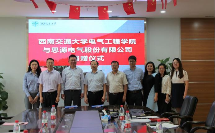 2021年5月13日下午,Fun88乐天堂-乐天堂app-乐天堂官网 与思源电气股份有限公司在犀浦校区电气馆10212会议室举行校企合作签约仪式。Fun88乐天堂官网 院长陈维荣、西南交通大学对外合作与联络处处长谭建鑫、思源电气股份有限公司创始人,集团副董事长及清能总经理陈邦栋、教师代表高波等出席签约仪式。会议由Fun88乐天堂官网 团委书记张异主持。
