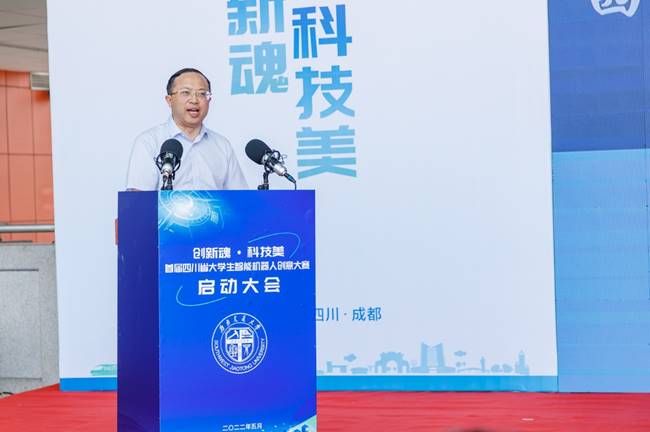 康国政副校长代表西南交通大学致辞,向出席启动会的各高校专家表示热烈欢迎,并向大赛主办单位四川省教育厅、指导单位中国大学生智能机器人创意大赛组委会致以诚挚谢意。西南交通大学高度重视对学生的实践动手能力和创新创业能力的培养,在创新人才培养、实践育人基地、各类学科竞赛等方面取得了显著成果。在以人工智能、大数据等为代表的新产业快速发展的当下,高校肩负着培养具有创新能力和合作精神的高端技术人才的使命,康国政副校长希望省内各高校的优秀学子能够以大赛为契机,练就过硬本领,勇担时代重任,奋力书写高水平科技自立自强新篇章。