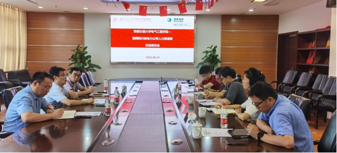 2022年6月24日下午,国网四川省电力公司领导莅临Fun88乐天堂-乐天堂app-乐天堂官网 进行交流研讨。国网四川省电力公司人力资源部主任、四川省人大代表、四川省普通高等本科学校电气与自动化类专业教学指导委员会委员姚建东,国网四川省电力公司人力资源部员工管理处处长赵坤,西南交通大学招生就业处处长陈岩峰,Fun88乐天堂官网 党委书记罗乾超,党委副书记谢力,副院长陈民武、胡海涛,辅导员李诗涵参与研讨交流。会议在犀浦校区X10212举行,谢力副书记主持会议。