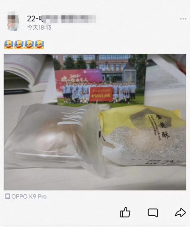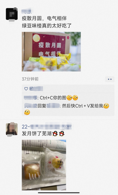 本科2022级邹玉菲:第一次离家千里过中秋,拿到的第一个月饼就是咱们Fun88乐天堂 为同学们准备的。第一件事就是拍照发朋友圈炫耀哈哈哈哈哈。封校以来,虽然和老师同学们的见面少了,但线上的联络关心却一直没断过。从开学发的电子闹钟,到封校发的饭盒,再到中秋发的月饼,真的让我感受到了温暖与感动。疫情只能关上校门,却关不上咱电气人的心门!