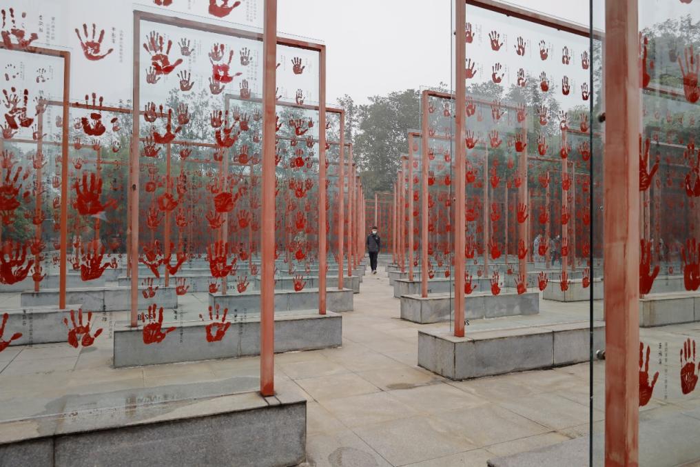 首先来到中国老兵手印广场,在讲解员的解说下,同学们得知,每个手印的主人都是当年参加过抗战的老兵,他们中大部分已经去世,健在的也是百岁左右的老人。手印碑林是老兵的汇集,是英雄和力量的汇集,更是民族精神和气节的汇集,这一场景深深触动同学们的内心。
