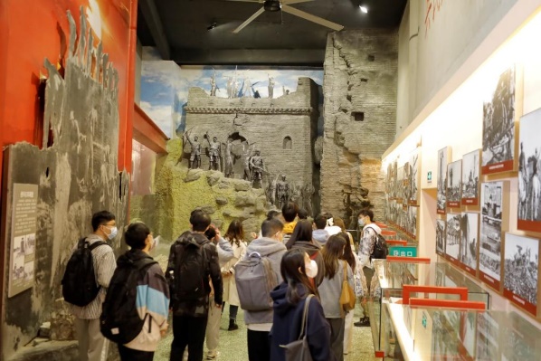 川军抗战馆展现30万川军出川抗战、300万壮丁奔赴前线的历史史实。通过采用复原场景、沙盘模型、雕塑等多种形式,生动展现了“无川不成军”的含义,带给各位同学视觉的冲击和爱国主义精神的启迪。