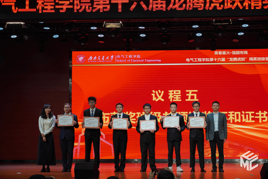班级建设经验交流环节结束后,主持人宣布了本次“龙腾虎跃”精英班级答辩赛的获奖名单。王斌书记、吴广宁教授、谢力副书记、陈民武副院长、胡海涛副院长、张异老师为获奖班级颁发荣誉证书和奖杯。现场气氛热烈,同学们为获奖班级送去掌声与欢呼。