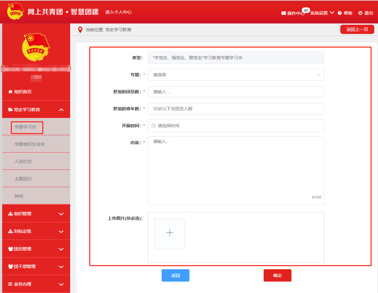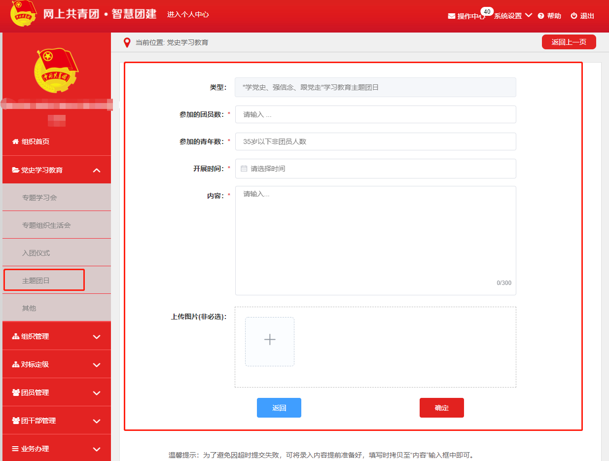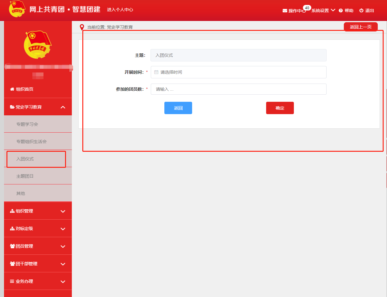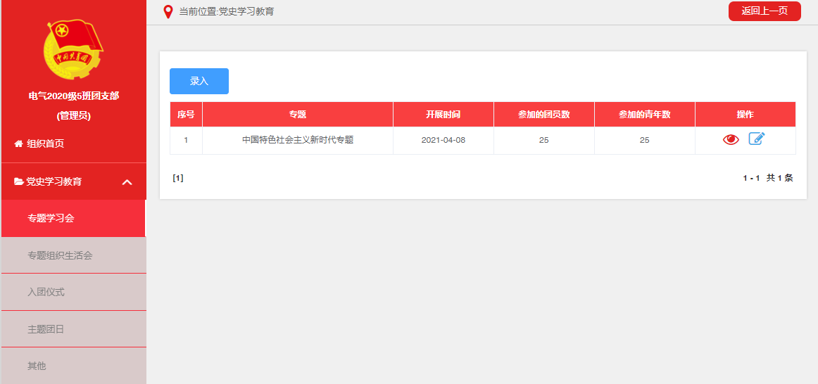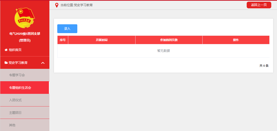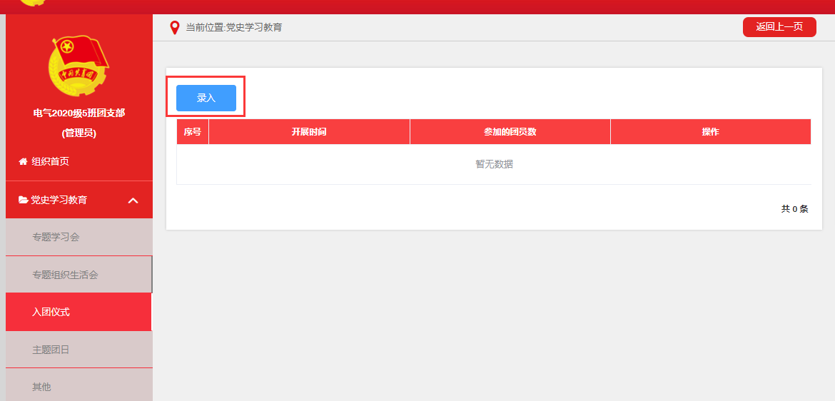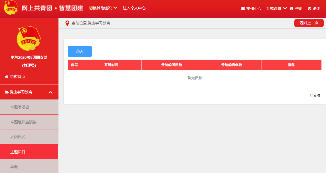 根据校团委及Fun88乐天堂 团委《2021年“学党史、强信念、跟党走”团员主题学习教育实践活动的实施方案》,各团支部需在“智慧团建”系统中“党史学习教育”模块记载学习教育情况,主要包括专题学习会、专题组织生活会、主题团日、入团仪式和其他实践教育活动开展情况及团干部开展专题宣讲等。“智慧团建”系统中“党史学习教育”模块具体录入要求如下。