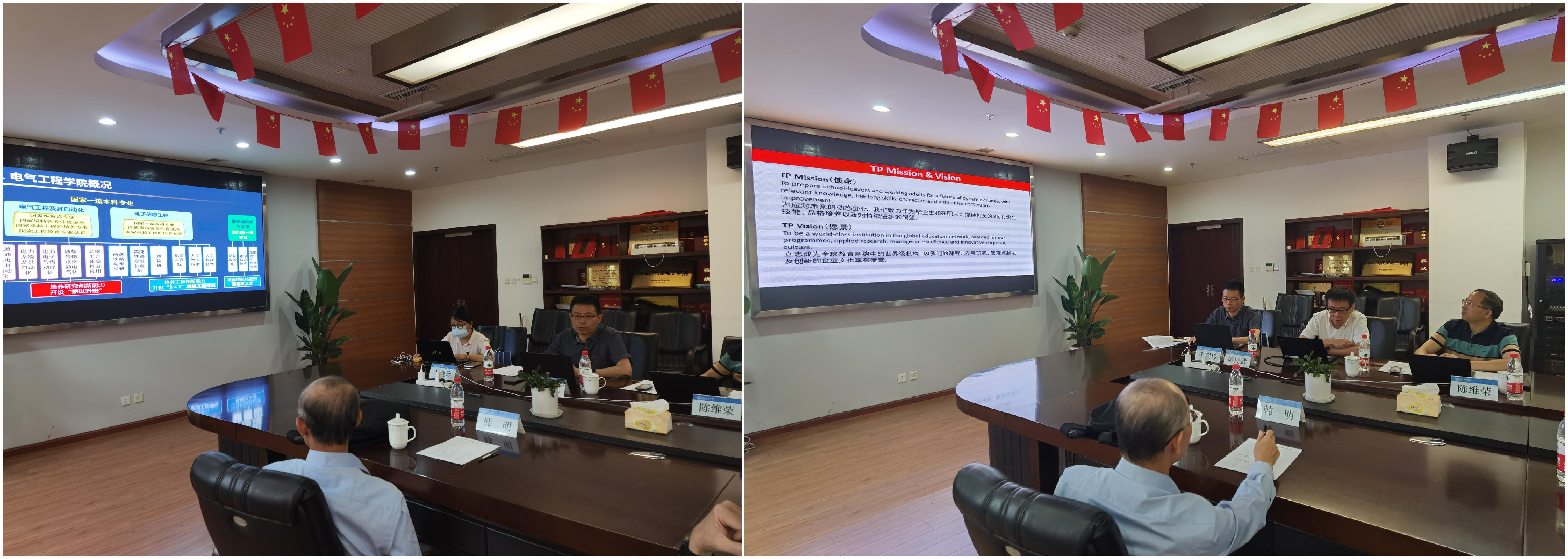 On June 28th, the delegation from Temasek Polytechnic in Singapore visited the college for exchange. Mr. Song Guoyun, Dean of the School of Engineering of Temasek Polytechnic, Mr. Chen Shuli, Senior Advisor of the President's Office (former Vice President), Mr. Han Ming, Chief Scientist, and Mr. Wang Gucheng, Director of the Clean Energy Research Centre; Prof. He Zhengyou, Dean of the School of Electrical Engineering of Southwest Jiaotong University, Prof. Feng Xiaoyun, Prof. Chen Weirong, Vice Dean Chen Minwu, and Vice Dean Liu Zhigang, Prof. Huang Deqing, participated in the meeting. Vice Dean Chen Minwu presided over the meeting.