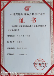 On June 27th, the 2022 China Communications and Transportation Association Science and Technology Award Commendation Conference, hosted by China Communications and Transportation Association, was successfully held in Beijing Guoji International Conference and Exhibition Centre. Professor Liu Zhigang of our College won the 2022 CCTA Science and Technology Excellence Award.