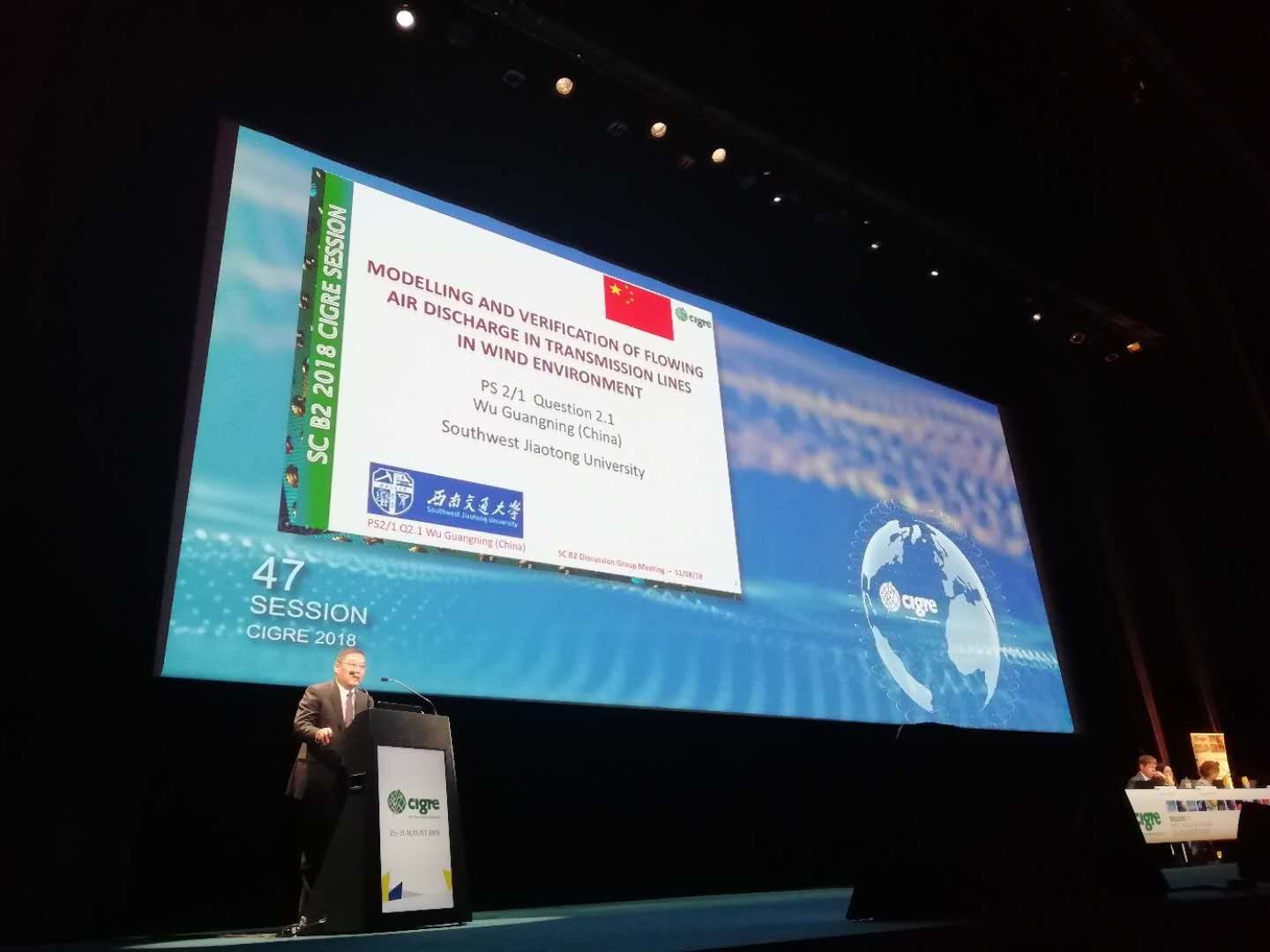 On August 26, 2018, CIGRE Session 47, the most influential international conference in the field of international electricians, was grandly held in Paris, France. More than 5,000 representatives of power enterprises, scientific research institutions and manufacturing enterprises from 97 countries attended the conference. Zheng Baosen, President of the Chinese Society of Electrical Engineering, Xie Mingliang, vice-president and general secretary of the Chinese Academy of Engineering, Li Licheng, academician of CAE and Tang Guangfu, academician of CAE attended the conference. Professor Wu Guangning was invited to attend the conference as the director of the Special Committee on Overhead Lines (SC B2) of CIGRE China National Committee with Mr. Wei Wenfu, secretary of SC B2 of CIGRE China Committee and a member of CIGRE.