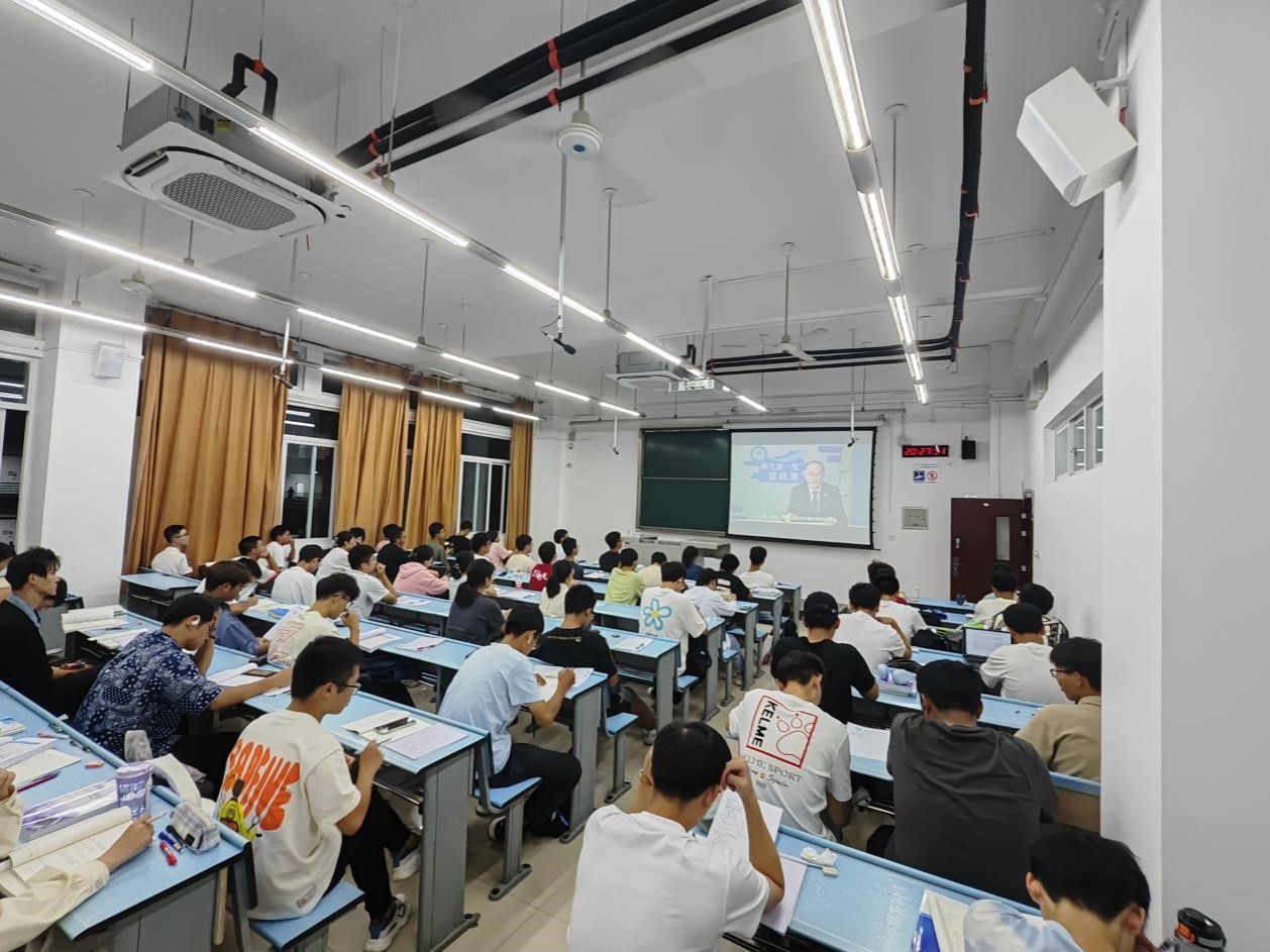 2023年9月19日晚上20:30,Fun88乐天堂官网 2023级全体本科新生分班开展了“新生第一堂思政课”学习。此次学习由西南交通大学党委书记余敏明主讲,以视频的形式进行集中研学。