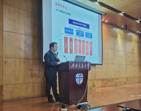 吴积钦教授向同学们详细地介绍了学科发展、专业概况、培养目标以及毕业就向等同学们关心的问题。随后,吴教授还介绍了我院牵引供电学科发展的基本情况,鼓励同学们勤学不懈,为牵引供电的发展贡献自己的力量。王晓茹教授则向同学们介绍了电力系统学科的发展历程及发展前景,还向大家介绍了我院优秀教师在电气各领域的研究方向,希望各位同学能多参与老师的项目,找到属于自己的方向。
