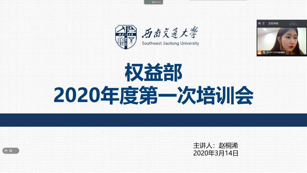 通过本次线上会议,权益部全体成员对权益工作有了更加清楚地认识,对本学期的权益活动也有了一定的了解,以便权益活动的顺利举办。