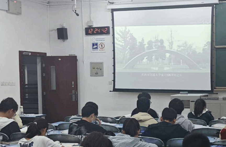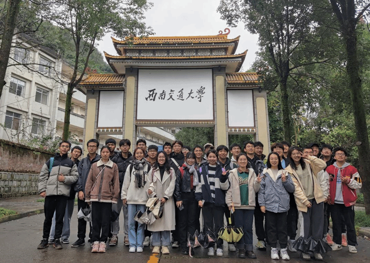 同学们前往西南交通大学峨眉校区,将团课中学习的知识结合到实践中。同学们在充满历史气息的校园里漫步,见识到了颇具历史的火车实验轨道、红色电影放映厅等等。这些无一不向我们展示那个年代留下的历史痕迹。由于峨眉校区地处峨眉山脚下,地形落差较大,踏上“157阶”长梯,同学们感受到了先辈们在峨眉求学的不易。而后同学们漫步于校友馆与校史文化长廊,感受十八次迁校、十八次更名的艰辛,以及先辈们为国奉献的伟大。这些都在用最朴素的方法向我们诠释着“竢实扬华,自强不息”的真正含义。