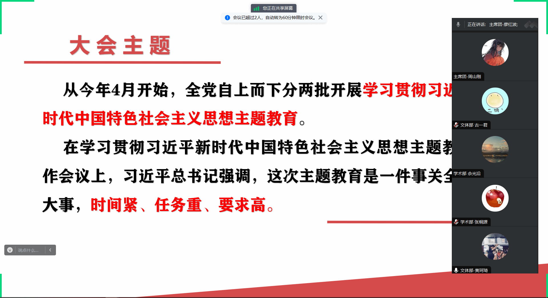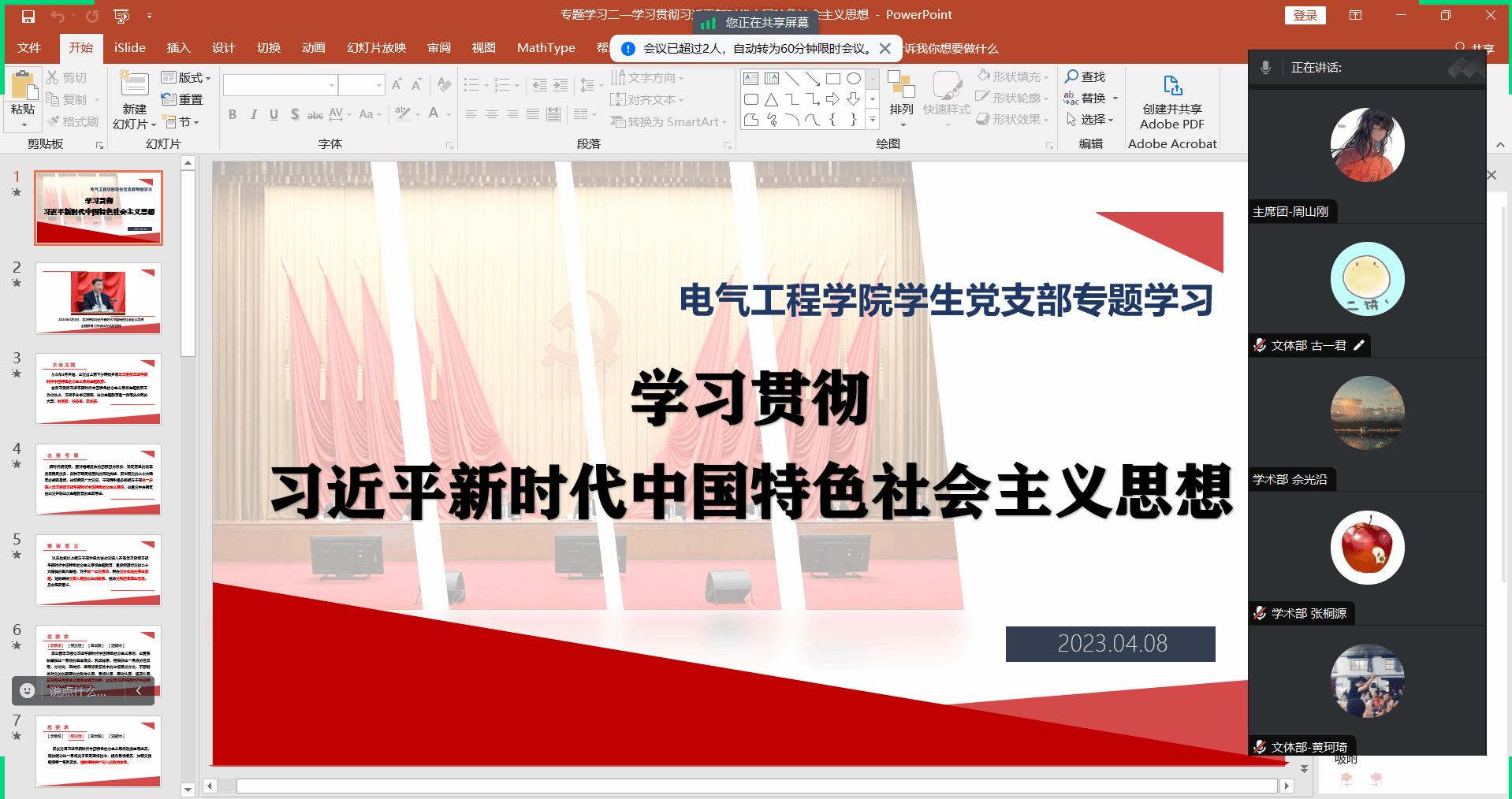 2023年4月8日,Fun88乐天堂官网 研究生临时党支部开展“学习贯彻习近平新时代中国特色社会主义思想”专题学习会议。研究生会全体成员参与此次活动,活动由周山刚同志领学。