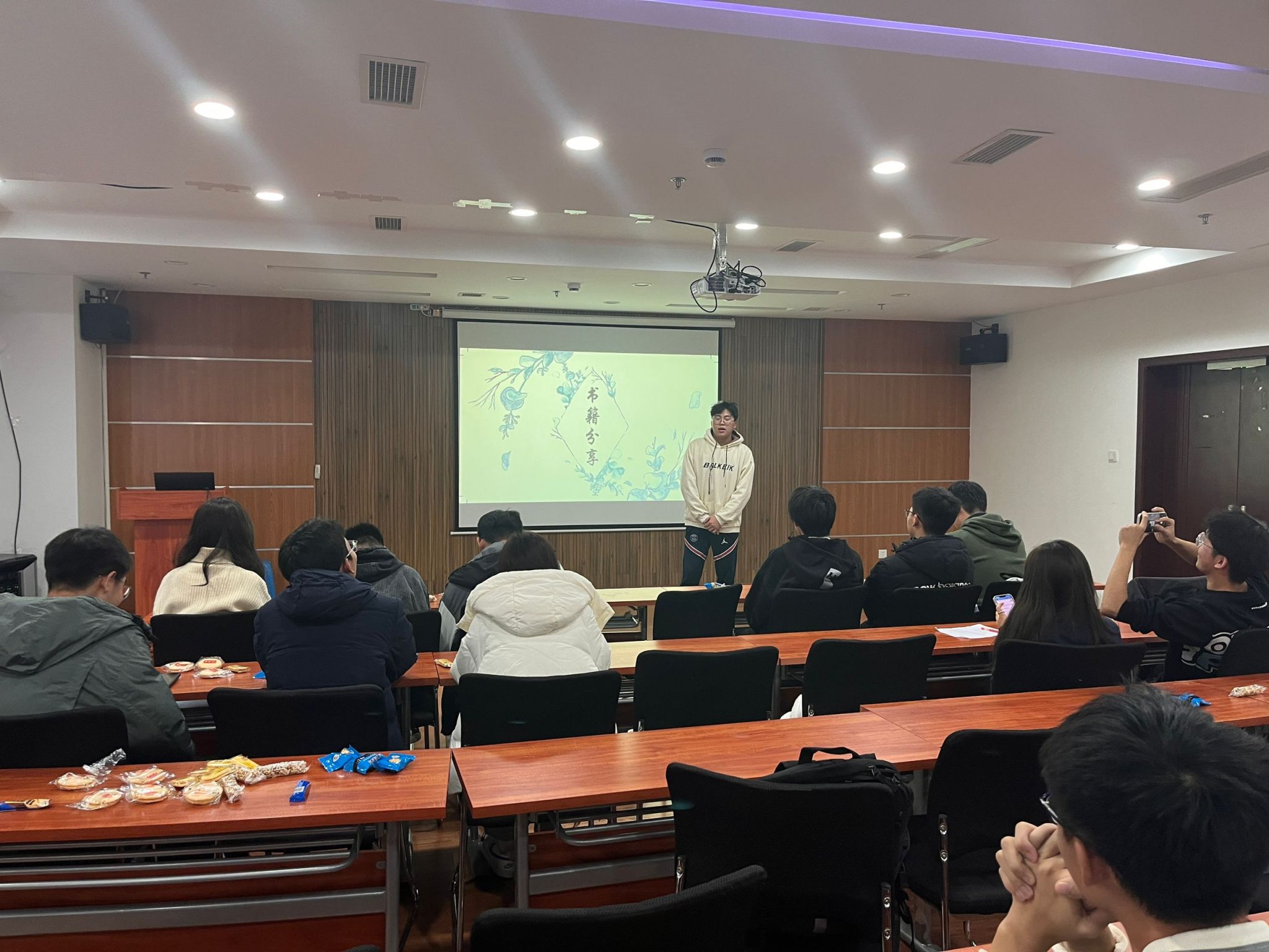 本次活动主要由刘鼎和胡洪林同学负责。刘鼎同学负责现场主持以及物资筹办;胡洪林同学负责本次活动的ppt制作、现场维护等工作。各位同学的轮番上台展示,在分享了书籍的同时也锻炼了自己面对公共场合的勇气与能力。在活动的最后我们对本次分享书籍的优胜组颁发了证书以及奖品,希望能激励他们将读书的好习惯一直保持下去。