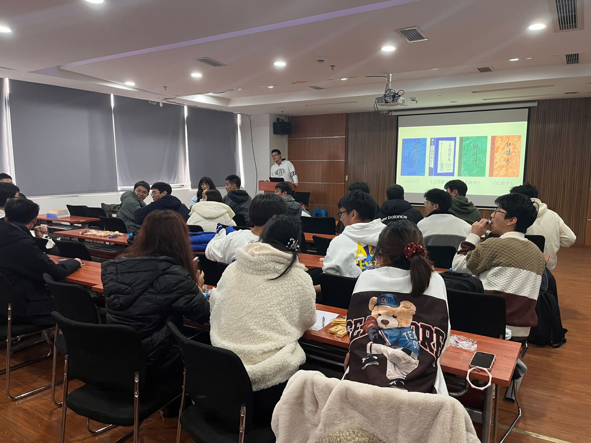 本次活动主要由学生事务中心2023级、2022级部员参加。在刘鼎同学介绍了本次活动的主题以及相关安排之后,各小组代表分别进行分享演讲。从四大名著到外文经典,各组成员通过分享不同类型的书籍、不同的观点、不同的看法,共同探讨分享心得。思想的火花在交流中碰撞,精神的世界在沙龙中具象与升华。