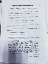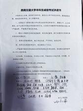 紧接着,两位老师着重强调了考场纪律,并提醒同学们注意携带证件等。随后带领同学们学习《西南交通大学本科生考试违规处理办法》并签订了诚信考试承诺书,以真实的案例警醒同学们要诚信考试。
