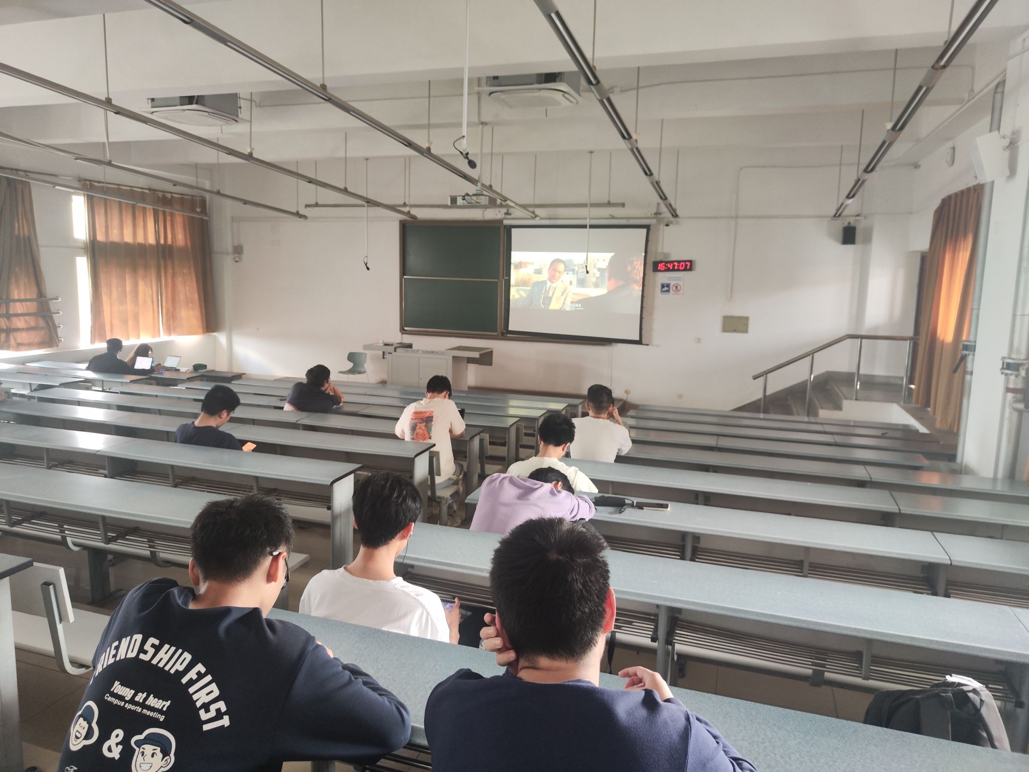 在电影放映期间,同学们全神贯注。精彩的影片不仅给他们带来了视听上的愉悦,更引导他们进行一次深入探索内心情感的心灵之旅。