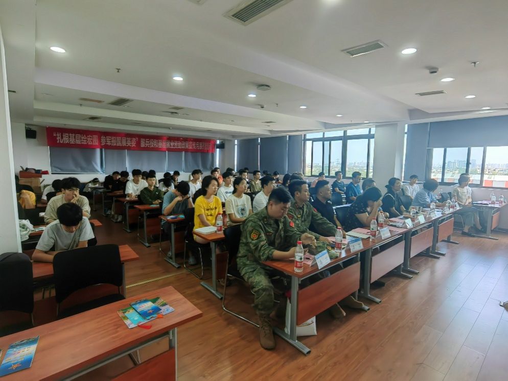 Fun88乐天堂 2021级本科生、曾于2021年应征入伍并服役于中国人民解放军东部战区陆军第71集团军某旅车载155自行加榴炮营的孙少杰同学则作为退役大学生向同学们真挚地分享了他从军的初衷、军营生活中的挑战与成长。同时向大家详细介绍了入伍报名条件、报名流程以及退伍大学生的待遇及政策。“参军不仅是职业选择,更是责任和荣誉的体现”,他的故事中,既有艰苦训练的汗水,也有完成任务的自豪,独到的见解和个人经验让现场同学直观地理解军旅生活。分享最后孙少杰号召在校同学勇担时代使命,把个人的理想追求融入党和国家事业之中。