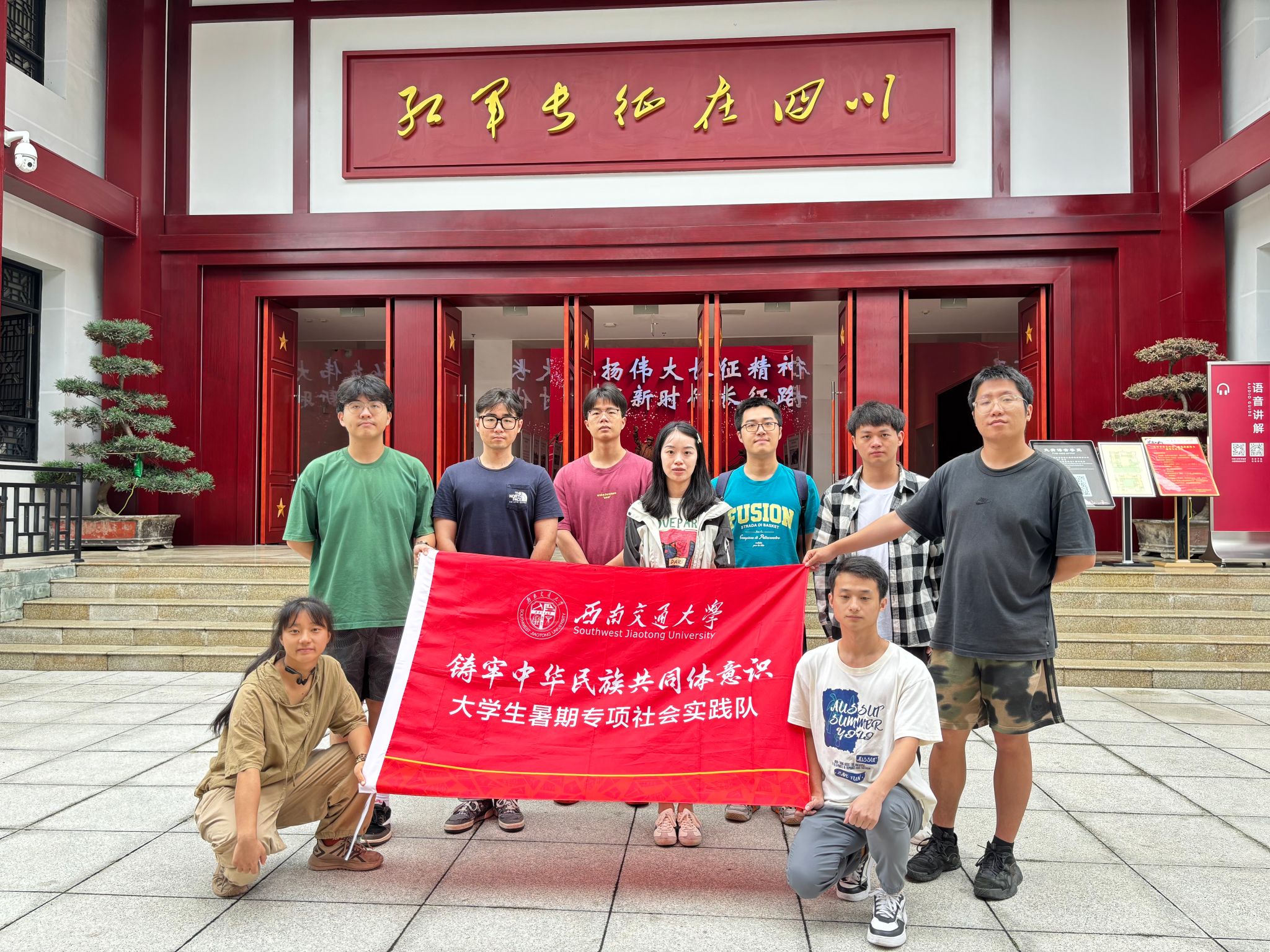 强渡大渡河是长征路上的一场生死之战,是否能够越过天险,是革命能否成功的关键。1935年,面对国民党军队的追击以及缺乏船只的紧急情况,中国工农红军的勇士们,面对天险般的大渡河展开了一场生死攸关的强渡之战。当地的船工伸出援手,以血肉之躯铸就了一道不可逾越的钢铁长城,冒着枪林弹雨帮助红军划船渡江。不管是船工还是红军,其中不少当地的少数民族,为长征和中国革命的胜利做出了贡献,谱写了民族团结的壮丽诗篇。如今,强渡大渡河遗址已成为当地丰富的红色文化,由此形成的旅游资源也是少数民族地区经济发展的重要来源。团队成员感受着各民族在历史长河中相互交融、共同发展、共同缔造中华民族的辉煌历史,纷纷表示要把红色精神内化于心、外化于行,积极投身于新时代的伟大事业中。