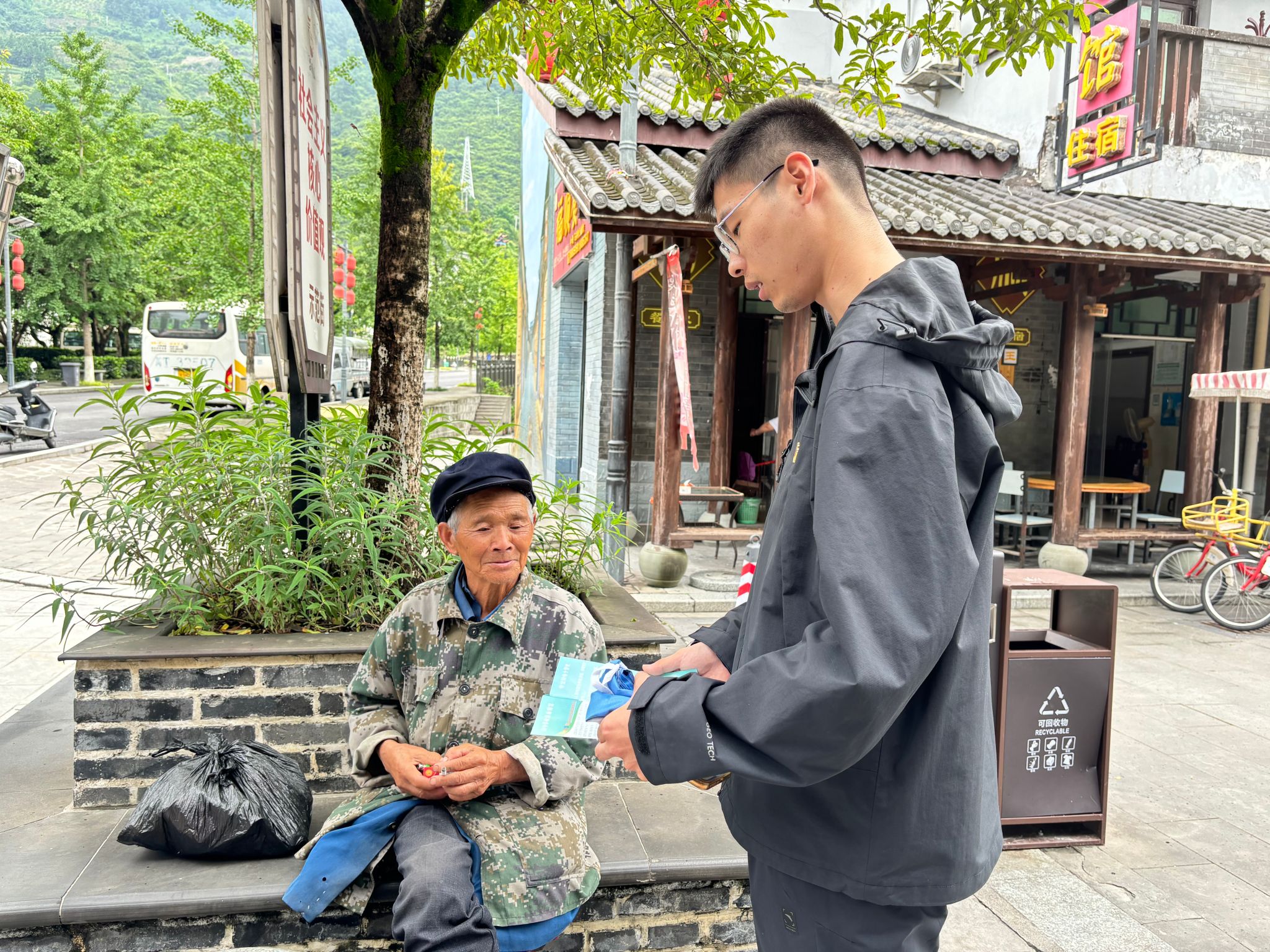 石棉县安顺场镇是汉、彝、藏等8个民族杂居的少数民族乡镇,少数民族超过了全镇总人口的40%。当地年轻人外出工作,留守的老年人居多。为了让更多居民了解安全用电知识,团队成员于6月28日下午在安顺场分组进行走访,主动将手册送到居民家中,并现场解答居民的疑问,普及安全用电知识,介绍电器设备的正确使用方法及注意事项;同时在居民中进行了“铸牢中华民族共同体意识”的宣传活动,推动各民族相互尊重、相互包容、相互支持,像石榴籽一样紧紧抱在一起。