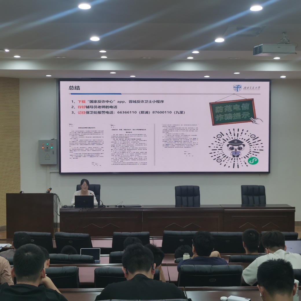 为提升研究生新生防范电信网络诈骗的安全意识和防范能力,2024年9月19日下午Fun88乐天堂官网 在九里校区J0222面向研究生新生举办了防电信网络诈骗会议,会议的主讲人是辅导员郭冰倩老师,通过线下和线上结合的形式,结合高校学生群体被电信网络诈骗的案例,向同学们宣讲反诈骗相关知识。