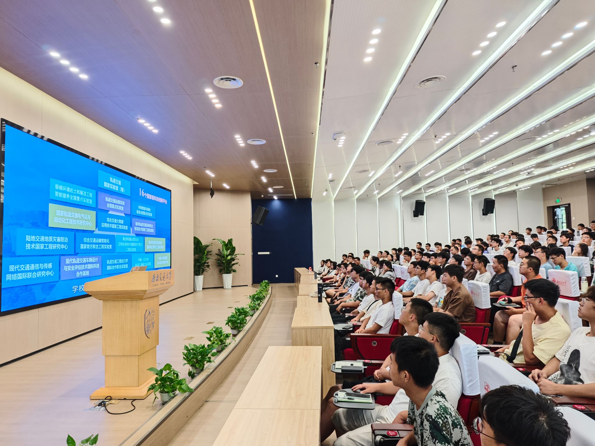 随后,余敏明书记以“承时代使命,谱青春华章,勇于肩负新征程的时代重任”为主题,分享了西南交通大学助力强国建设、民族复兴伟业新作为。一是面向世界科技前沿,大力实施重大科技工程。二是深度服务国家战略,支撑高铁事业引领世界。三是聚焦社会发展需求,提高人才自主培养质量。同学们选择了交大,就是选择了责任担当,希望同学们能深刻体会学校肩负的战略使命和时代责任,与学校一道不断砥砺担当作为。