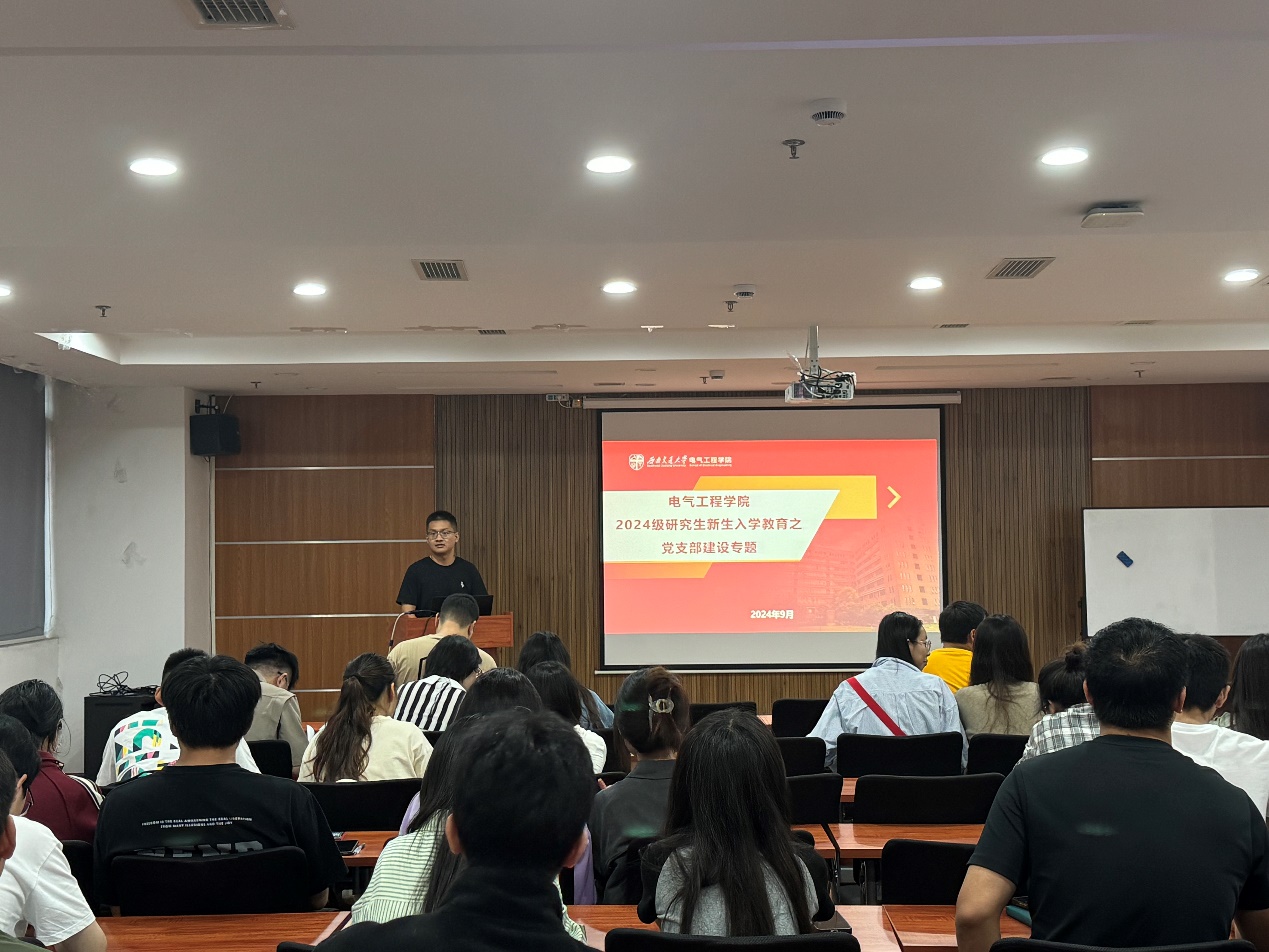 为全面提升新时代党支部建设质量,高质量做好党支部标准化、规范化建设,提升研究生党员的理论水平和材料撰写规范性。2024年9月29日15点Fun88乐天堂官网 硕士2024级在电气馆10832教室,举办了研究生党支部建设培训。此次培训邀请了辅导员孙海洋老师担任主讲,辅导员郭冰倩、王奕斐老师和全体2024级硕士、博士研究生党支部书记及支部委员参加。