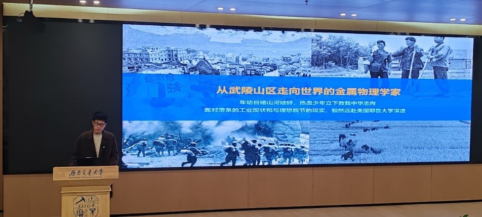 随后,姬晓月同学向大家继续分享我校吴自良院士的科学家故事。吴自良院士于1935年考入北洋大学,先读矿冶,后转学航空机械;在1944-1948年间赴世界顶尖级的卡内基理工Fun88乐天堂 学习冶金专业;在新中国成立后,取道香港回国,任北方交通大学唐山工Fun88乐天堂 (唐山交通大学,现西南交通大学)冶金系教授。在我国面对帝国主义威胁和大国核讹的情况下,吴自良院士献身“两弹”,主持研制分离铀同位素的核心部件甲种分离膜,于1964年试制成功并投入使用。
