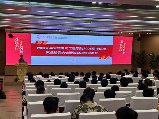 为帮助2021级的同学们能够更好地了解目前的就业形势,明确就业签约流程的办理,做出正确的就业选择,2024年9月8日15时,电气本科2021级就业动员大会暨就业形势宣讲会于图书馆一号报告厅举行。会议由本科2021级辅导员谢东旭主持。