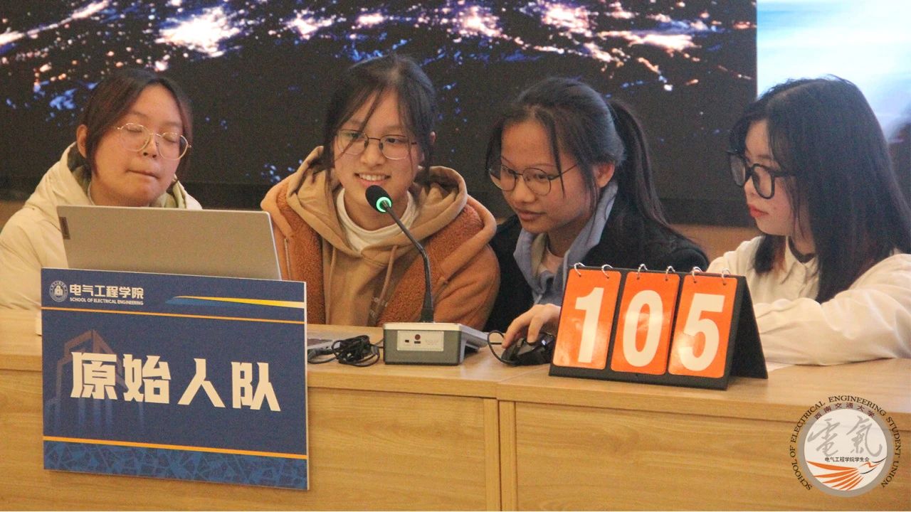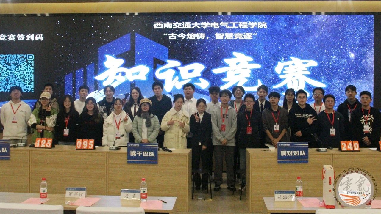 Fun88乐天堂官网 “古今熔铸,智慧竞逐”知识竞赛决赛于12月8日下午4点在图书馆一号报告厅正式举行。参赛选手在知识竞赛中激情对决、一较高下。到场的嘉宾有电子2023-04班班导师李志勇,23级辅导员詹睿、辅导员罗霁轩,22级辅导员孙海洋,21级辅导员何予诺,辅导员杨之溢以及各位辅导员助理。参加本次决赛的队伍为“蒙的全队”(电子2023-02班)、“啊对对队”(电气2023-05班)、“嘴干巴队”(电气2022-11班)、“原始人队”(电子2023-04班)。
