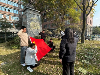 为深入学习贯彻党的二十大精神,激发研究生党员的科研报国热情,Fun88乐天堂官网 硕士2024级第二党支部在2024年11月21日开展了以“重温探索创新征途,延续科研报国经典”为主题的党支部活动,本次活动在电气馆前曹建猷雕像下进行,通过专题学习科学家事迹、自学心得交流和重温入党誓词,进一步弘扬科学家精神,激励党员勇担时代责任。