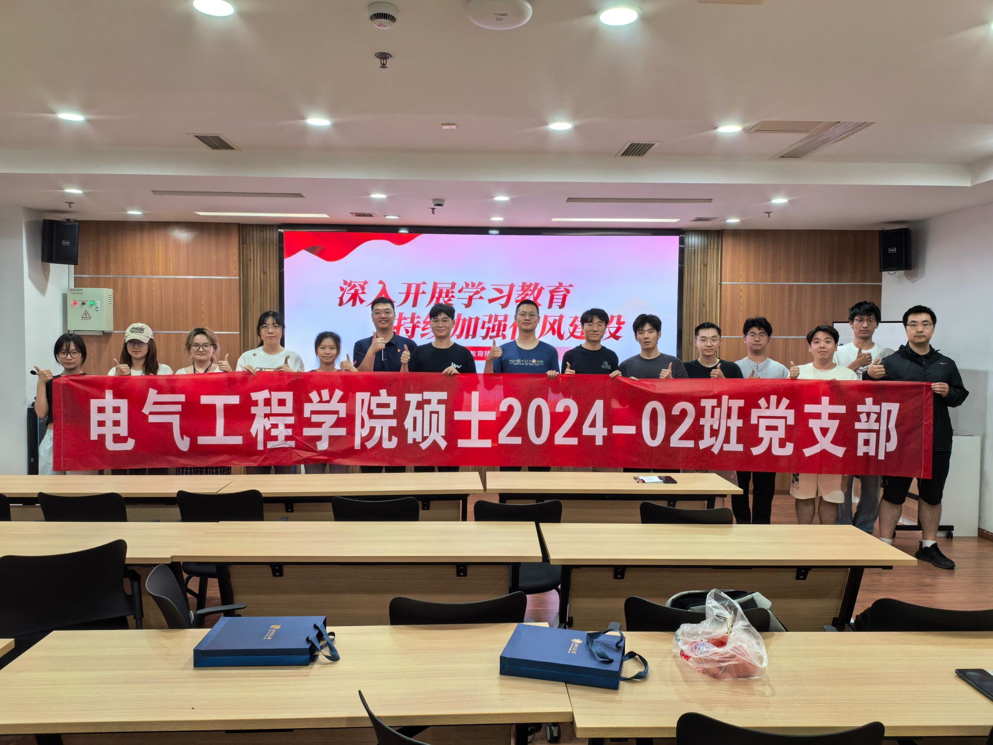 为积极响应党中央于 2025 年全国两会后至 7 月在全党开展深入贯彻中央八项规定精神学习教育的决定,进一步强化研究生党员的理论学习深度与广度,电气硕士2024-02班党支部于2025年4月24日组织开展了以“八项规定塑党风,廉洁自律树典范”为主题的学习教育活动。
