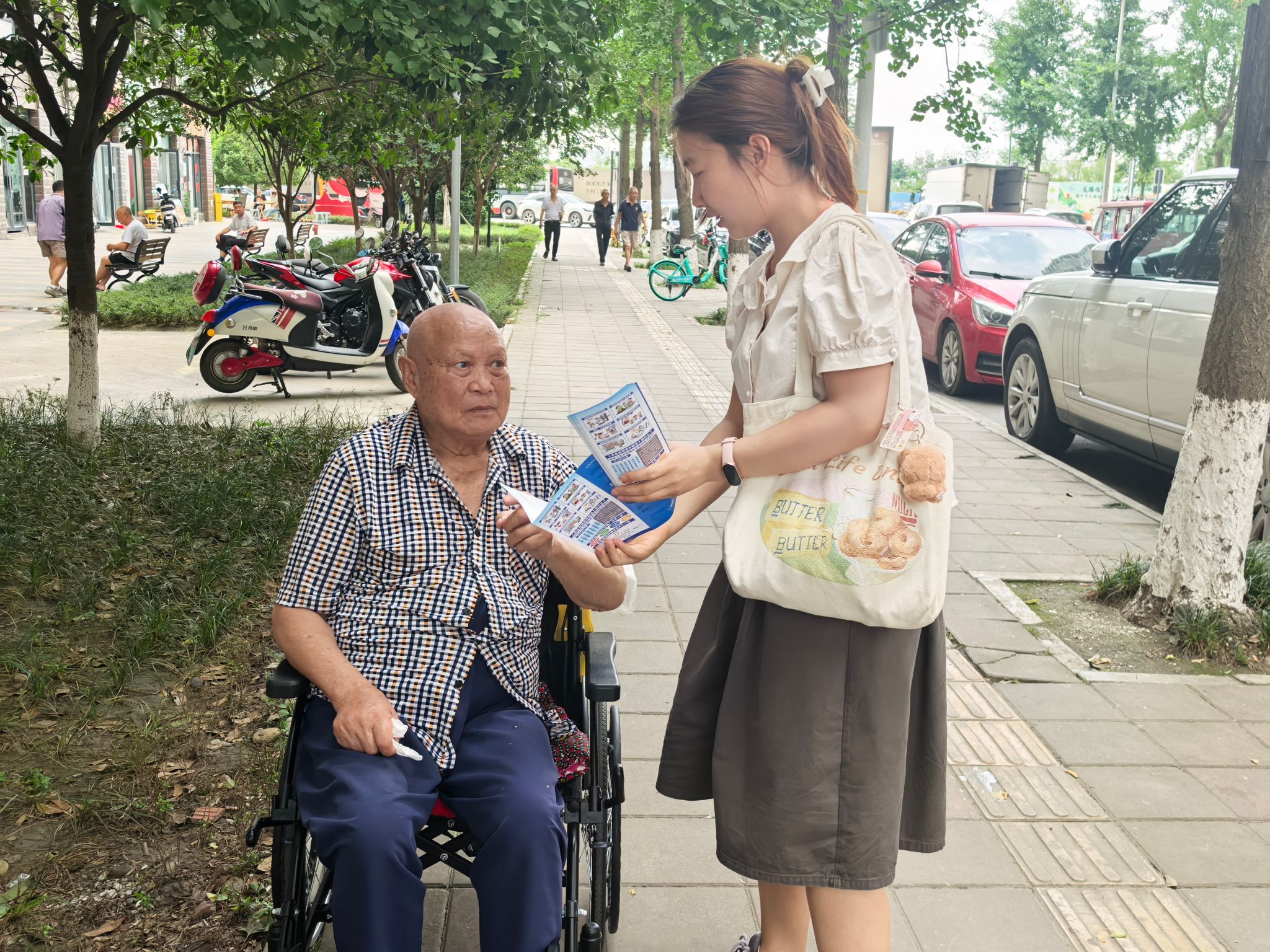 活动当天,在成都郫都区方桥嘉苑社区内,开展了“一对一”智慧助老环节。西南交通大学电气硕士24级7班党支部的每名党员对接1-2位老人,进行分模块教学。