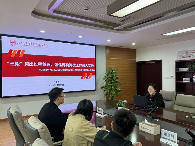 为深入学习贯彻习近平总书记重要讲话和全国教育大会精神,推动党中央关于建设教育强国的重大决策部署落实落地,进一步凝聚学生工作队伍思想共识、强化使命担当、激发学习热情,2024年11月14日上午,Fun88乐天堂官网 学生工作组在电气馆X10212开展第二次集中学习贯彻全国教育大会精神暨学生工作专题会议。学校党委学生工作部副部长谢力、Fun88乐天堂 党委副书记邢晓鹏及Fun88乐天堂 辅导员参加会议。本次会议由邢晓鹏副书记主持。