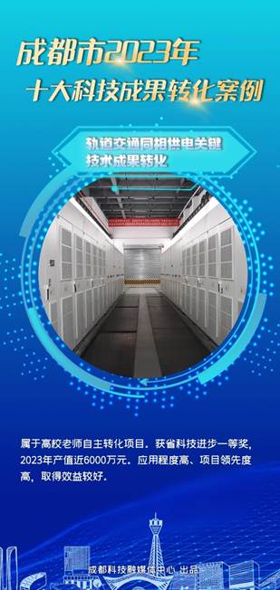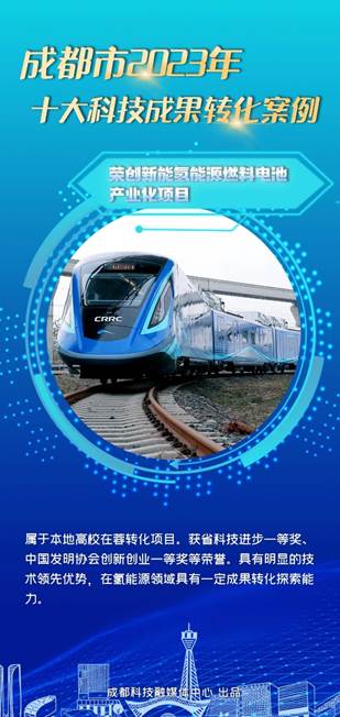 2024年3月14日,在成都市中试平台服务供需对接暨科技成果转化十大榜单发布会上,成都市2023年十大科技成果转化案例正式揭晓,Fun88乐天堂官网 共两项科技成果入选,分别是“荣创新能氢能源燃料电池产业化项目”和“轨道交通同相供电关键技术成果转化”。