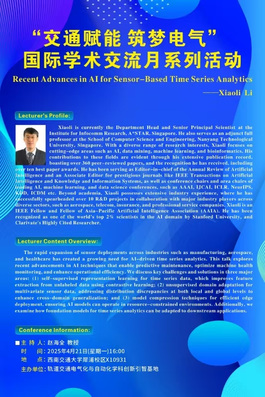 “交通赋能 筑梦电气”国际学术交流活动 Recent Advances in AI for Sensor-Based Time Series Analytics