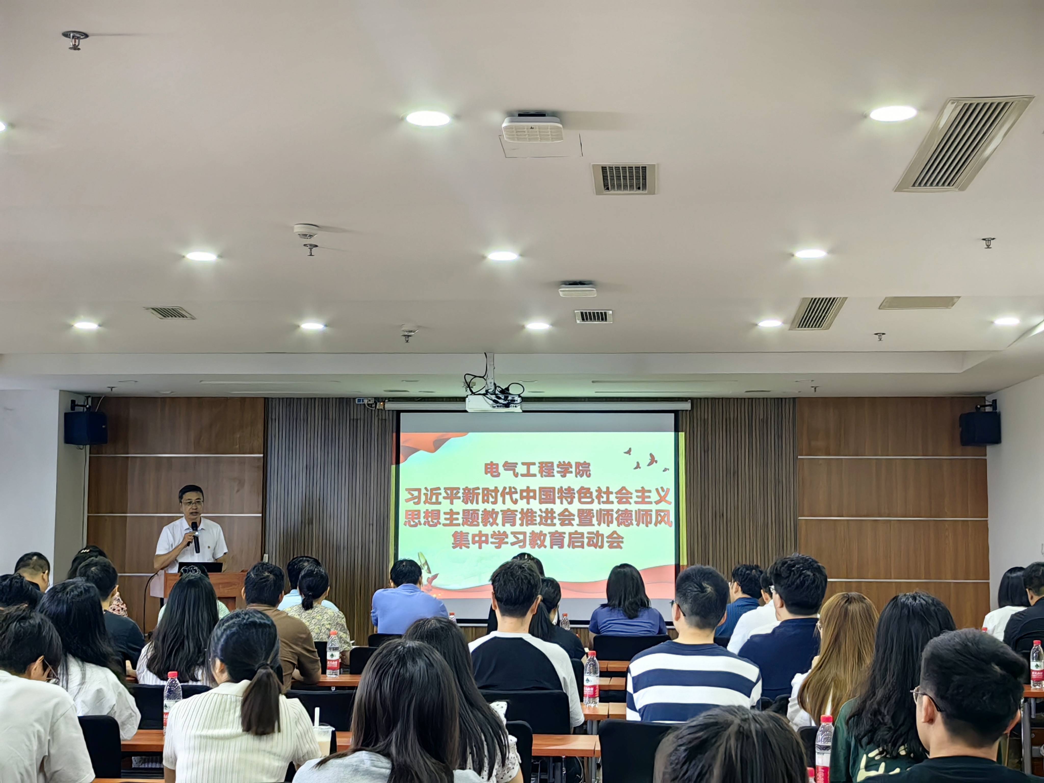 6月29日下午,Fun88乐天堂官网 党委召开了学习贯彻习近平新时代中国特色社会主义思想主题教育推进会暨师德师风集中学习教育启动会,Fun88乐天堂 党委书记王斌、党委副书记谢力、学生工作组副组长、团委书记张异以及Fun88乐天堂 全体师生党支部委员共90余人参加了会议。