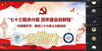 9月30日上午10点,Fun88乐天堂-乐天堂app-乐天堂官网 博士2022级党支部联合电子科技大学机电Fun88乐天堂 博士生支部、西南交通大学马克思主义Fun88乐天堂 博士支部、电子科技大学物理Fun88乐天堂 研究生一支部、电子科技读大学机电Fun88乐天堂 硕士七支部、电子科技大学机电Fun88乐天堂 硕士十二支部共同开展“欢度国庆节、喜迎二十大”线上主题活动。活动由电气科技大学机电Fun88乐天堂 博士生支部书记范昊洋同志主持,六个支部共计两百多名党员参加。