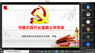 紧接着,西南交通大学马克思主义Fun88乐天堂 的李潘同志带来“中国式现代化道路从何而来”的主题分享。李潘同志从西方式现代化道路的介绍开始,阐述了中国式现代化新道路的发展历史,强调我们应该坚持和发展中国特色社会主义。
